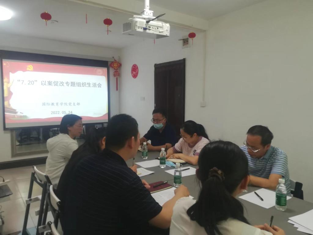 根据学校党委相关要求,2022年5月24日,国际教育学院党支部在文苑2号楼411办公室召开以案促改专题组织生活会。校党委督导组(学校能力作风建设年巡回指导四组)欧阳文峰、谢玉芬列席会议。会议由国教院党支部书记、院长王哲主持,全体党员同志参加。