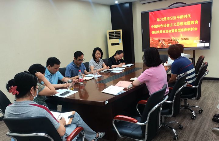 按照学校主题教育工作部署要求,7月4日下午,国际处(港澳台办)和国教院在力行楼226室召开学习贯彻习近平新时代中国特色社会主义思想主题教育调研成果交流会暨典型案例剖析会。部门全体工作人员参会,会议由国际处(港澳台办)副处长(副主任)朱宝锋主持。