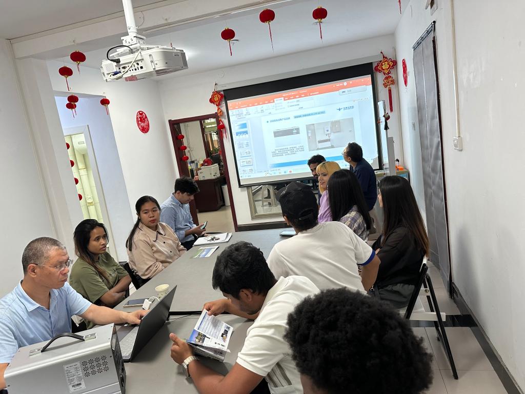 秦俊光总经理拥有发明专利十余项,荣获第20届中国专利优秀奖,现任深圳多氟多储能技术有限公司执行董事、总经理,深圳市河南焦作商会会长。他首先介绍了公司的发展历史,然后又详细介绍了公司的家庭储能和便携式储能产品的功能与应用场景,并详细地向在座的留学生介绍了产品的优点:如长寿命、免售后、安全可靠、高超的性价比等。他希望更多校友能通过本次交流,真正了解公司的优势和良好的发展潜力,同时,他也希望高层次国际人才能够到深圳公司实习助力,参与公司的建设和发展。听了秦总的介绍,同学们兴趣盎然,纷纷表示他们国家对此类产品的需要很大,并踊跃发言,针对产品的价格和主要性能指标及安全问题提出了自己的见解。其中,三位同学当场响应号召,应秦总的邀请决定参与八月份在广州举办的国际展会,愿意助力公司的产品走向更多海外市场,这也将会成为他们人生中难得的社会历练,这也是他们今年暑期精彩的一次实习实践。秦总不仅给我校国际学生上了一堂精彩的新能源储能课程,也向国际教育学院捐赠了一台500W太阳能便携储能装备,希望让更多的留学生熟悉储能产品,积极向海外推荐,共同为实现人类命运共同体的美好生活做出贡献。